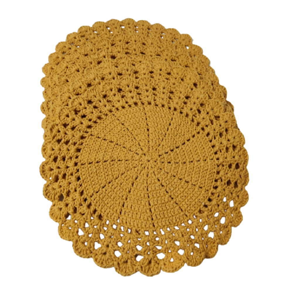 Decore sua mesa com Jogo de Sousplat feito em Croche com carinho. Jogo com 6 peças para decorar sua mesa, confeccionadas com barbante 85% Algodão e 15% Fibras.